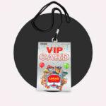 Disfruta de esta tarjeta VIP para evento de tu hijo. Es el accesorio perfecto para una fiesta de cumpleaños con temática para niños. Esto no es papel! Es una tarjeta real de PVC una verdadera credencial con una cuerda de nylon. Le da la fineza al artículo ya que es una verdadera VIP card. También puede ser usada como invitación y ser entregada a tus invitados con anticipación como un toque exclusivo.